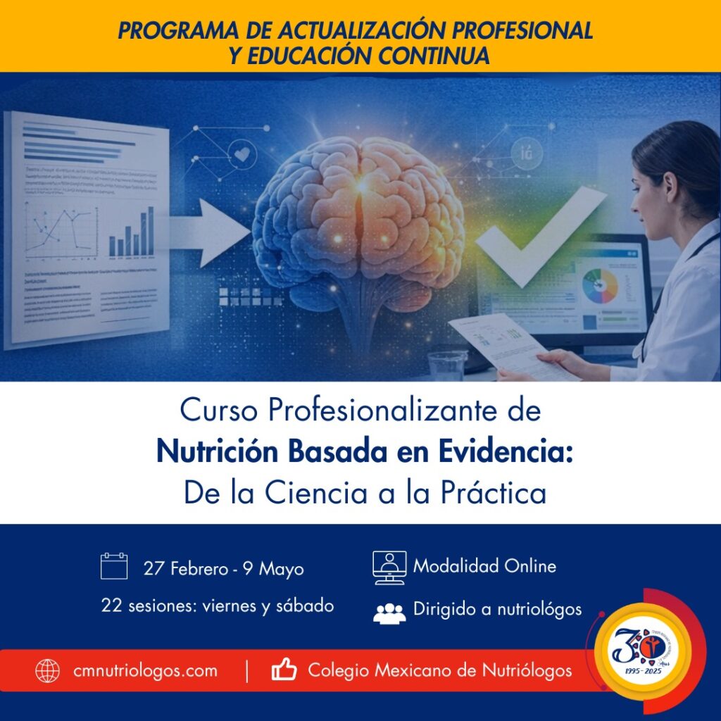 Programa de actualización profesional dirigido a nutriólogos y nutricionistas que desean fortalecer sus competencias en Nutrición Basada en Evidencia y prepararse para la Certificación Profesional en Nutrición (NC).